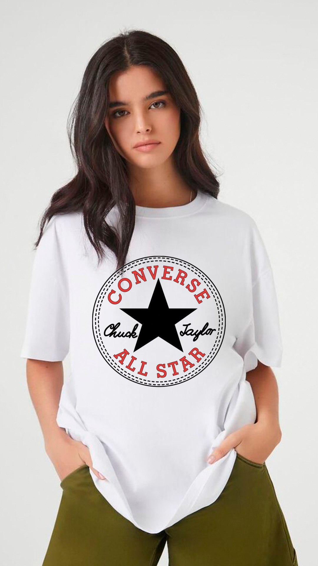 Remera blanca estampada con el icónico logo Converse All Star, un clásico que nunca pasa de moda.