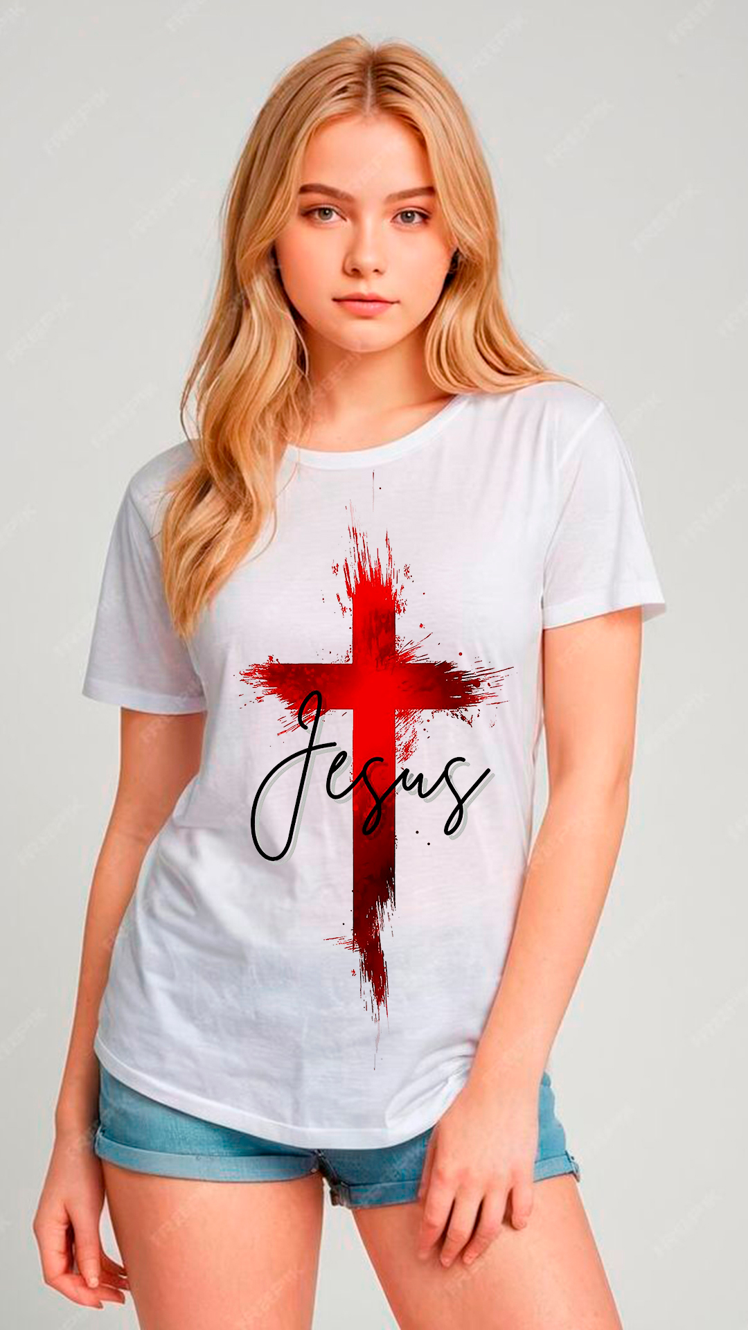 Significado: El diseño combina el símbolo del cristianismo (la cruz) con un efecto visual poderoso que representa la sangre derramada por Jesús, junto con su nombre en letras elegantes, creando una declaración bold de fe.