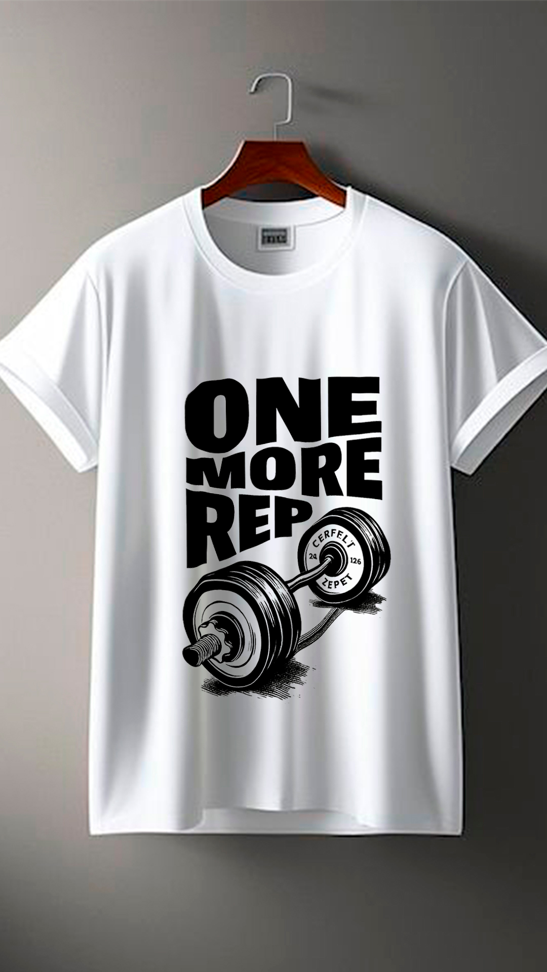 Remera blanca de estilo deportivo con un diseño motivacional inspirado en el mundo del fitness. En el centro destaca un estampado en color negro con la frase “ONE MORE REP”, un mensaje clásico del entrenamiento que representa esfuerzo, disciplina y superación personal.