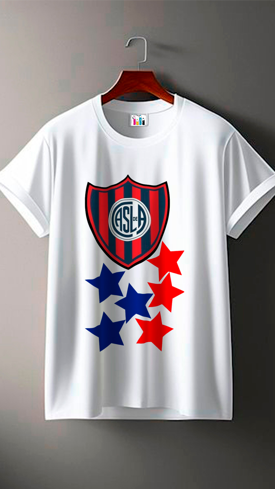¡Llevá con orgullo los colores del Ciclón! Esta remera blanca de corte moderno y ajuste cómodo presenta el escudo oficial de San Lorenzo de Almagro: un escudo con franjas rojas y azules, y el emblema central con las siglas “ASLA”, rodeado por cuatro estrellas —tres azules y una roja— que representan los títulos internacionales más importantes del club: la Copa Libertadores 2014, la Recopa Sudamericana 2015, la Suruga Bank 2015 y la Copa Argentina 2015.